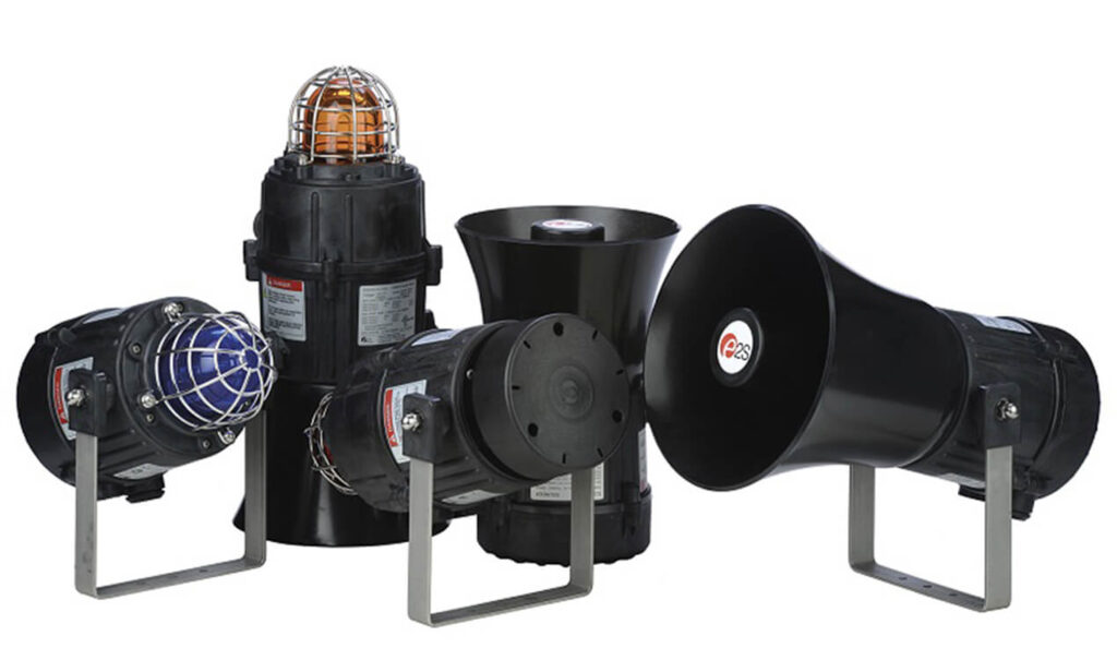 The series consists of powerful 45 tone, three channel/stage electronic alarm horn sounders with an output of up to 121dB(A) @ 1 metre (112dB(A) @ 10ft/3m) – multi-horn installations feature automatic synchronisation of the alarm tones on all devices on the same circuit. E2x visual signals include Xenon strobe 5 and 10 Joule beacons, available with a choice of six lens colours, provide up to 1,000,000 peak candela. Combination signals offer a SPL of 116dB(A) @ 1 metre (107dB(A) @ 10ft/3m) with a 5 Joule Xenon strobe, providing an efficient and cost-effective audible and visual signal in a one device. For PA applications the E2x loudspeakers are available as 15 or 25W in either line transformer or low impedance versions.